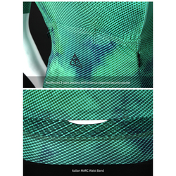 Tricota de ciclismo ligero está diseñado para montar en condiciones cálidas y húmedas. El tejido UltraDeanSilk premium exclusivo en la parte delantera es suave, altamente elástico y se ajusta a la forma de su cuerpo. El tejido técnico DeanDot se extiende a través del panel superior de la espalda y las mangas, lo que ayuda a la libertad de movimiento y ventilación. La malla en forma de ventilador debajo del panel inferior de la espalda promueve el flujo de aire, lo que permite una regulación óptima de la temperatura. La cintura marc italiana sostiene el maillot firmemente en su lugar.