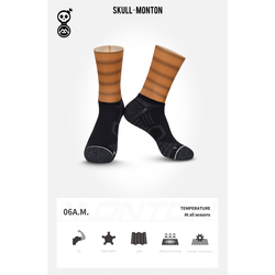 Calcetines extremadamente ligeros y transpirables construidos con suela Coolmax y una formación integral de medias texturizadas de rayas antideslizantes diseñadas para condiciones de calor y humedad de verano. Las características incluyen fibra sintética fácil de teñir diseño personalizado, construcción para mantener los pies frescos, y hilo Coolmax suave y de alta absorción para el máximo confort. taiwán bilateral antideslizante rayas texturizadas medias (52% poliéster, 48 elastano)Suela Coolmax 46% Coolmax® 32% Nylon 14% Poliéster 8% Spandex