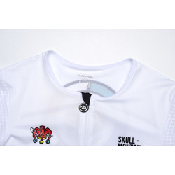 Tejido DeanSilk altamente elástico y transpirable en la parte delantera, mientras que Mitte en la parte posterior del cuerpo con malla texturizada en forma de abanico en las mangas para una ventilación adicional y un acabado elegante. Perfil bajo doblado en mangas selladas y parte inferior delantera de jersey para una apariencia limpia. Los bolsillos se han reforzado con cinta adhesiva en el interior, lo que le permite llenarlos de forma segura con todos sus elementos esenciales para montar y el bolsillo con cremallera está forrado con una tela impermeable para mantener secos sus objetos de valor. Hecho en Italia M.AR.C. la pinza de silicona en la cintura mantendrá la camiseta en su lugar.