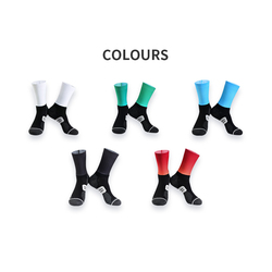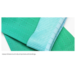 Calcetines extremadamente ligeros y transpirables construidos con suela Coolmax y una formación integral de medias texturizadas de rayas antideslizantes diseñadas para condiciones de calor y humedad de verano. Las características incluyen fibra sintética fácil de teñir diseño personalizado, construcción para mantener los pies frescos, y hilo Coolmax suave y de alta absorción para el máximo confort. taiwán bilateral antideslizante rayas texturizadas medias (52% poliéster, 48 elastano)Suela Coolmax 46% Coolmax® 32% Nylon 14% Poliéster 8% Spandex
