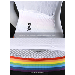 Construido para respirar, este maillot de ciclismo ligero está diseñado para montar en condiciones cálidas y húmedas. El tejido DeanSilk premium exclusivo en la parte delantera es suave, altamente elástico y se ajusta a la forma de su cuerpo.El tejido técnico DeanDot se extiende a través del panel superior de la espalda y las mangas, lo que ayuda a la libertad de movimiento y ventilación. La malla en forma de ventilador debajo del panel inferior de la espalda promueve el flujo de aire, lo que permite una regulación óptima de la temperatura. La cintura marc italiana sostiene el maillot firmemente en su lugar.