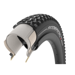 Banda: La banda de rodadura de Scorpion ™ XC H está compuesta de tacos bajos y cercanos cuya altura se reduce para aumentar la suavidad y limitar la deformación al tomar curvas en terrenos que no permiten la penetración.