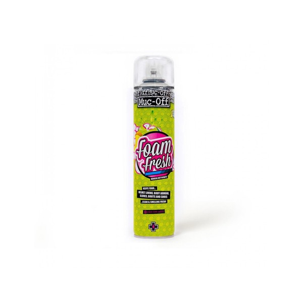 Muc-Off Foam Fresh es un limpiador de espuma altamente efectivo y fácil de usar al momento de limpiar tu casco. Foam Fresh tiene una acción de espuma instantánea, que quita la suciedad y la mugre de las superficies, dejando una fragancia fresca con olor cítrico. También es un producto que se puede usar en almohadillas, guantes, zapatos y jofas.