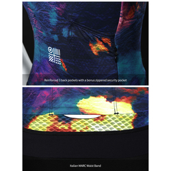 Tricota de ciclismo ligero está diseñado para montar en condiciones cálidas y húmedas. El tejido UltraDeanSilk premium exclusivo en la parte delantera es suave, altamente elástico y se ajusta a la forma de su cuerpo. El tejido técnico DeanDot se extiende a través del panel superior de la espalda y las mangas, lo que ayuda a la libertad de movimiento y ventilación. La malla en forma de ventilador debajo del panel inferior de la espalda promueve el flujo de aire, lo que permite una regulación óptima de la temperatura. La cintura marc italiana sostiene el maillot firmemente en su lugar.