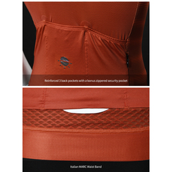 Tricota de ciclismo ligero está diseñado para montar en condiciones cálidas y húmedas. El tejido UltraDeanSilk premium exclusivo en la parte delantera es suave, altamente elástico y se ajusta a la forma de su cuerpo. El tejido técnico DeanDot se extiende a través del panel superior de la espalda y las mangas, lo que ayuda a la libertad de movimiento y ventilación. La malla en forma de ventilador debajo del panel inferior de la espalda promueve el flujo de aire, lo que permite una regulación óptima de la temperatura. La cintura marc italiana sostiene el maillot firmemente en su lugar.