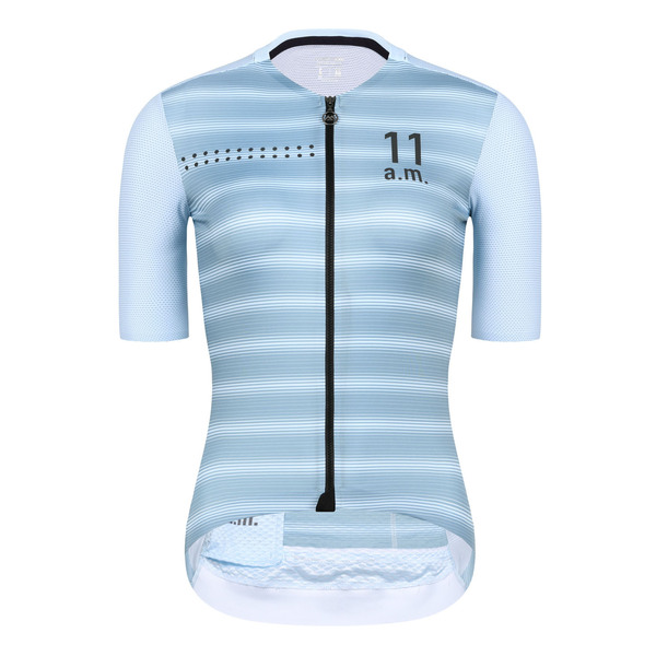 Tricota de ciclismo ligero está diseñado para montar en condiciones cálidas y húmedas. El tejido UltraDeanSilk premium exclusivo en la parte delantera es suave, altamente elástico y se ajusta a la forma de su cuerpo. El tejido técnico DeanDot se extiende a través del panel superior de la espalda y las mangas, lo que ayuda a la libertad de movimiento y ventilación. La malla en forma de ventilador debajo del panel inferior de la espalda promueve el flujo de aire, lo que permite una regulación óptima de la temperatura. La cintura marc italiana sostiene el maillot firmemente en su lugar.