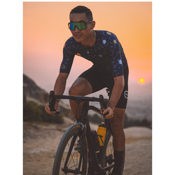 Tejido DeanSilk altamente elástico y transpirable en la parte delantera, mientras que Mitte en la parte posterior del cuerpo con malla texturizada en forma de abanico en las mangas para una ventilación adicional y un acabado elegante. Perfil bajo doblado en mangas selladas y parte inferior delantera de jersey para una apariencia limpia. Los bolsillos se han reforzado con cinta adhesiva en el interior, lo que le permite llenarlos de forma segura con todos sus elementos esenciales para montar y el bolsillo con cremallera está forrado con una tela impermeable para mantener secos sus objetos de valor. Hecho en Italia M.AR.C. la pinza de silicona en la cintura mantendrá la camiseta en su lugar.