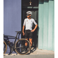 Tejido DeanSilk altamente elástico y transpirable en la parte delantera, mientras que Mitte en la parte posterior del cuerpo con malla texturizada en forma de abanico en las mangas para una ventilación adicional y un acabado elegante. Perfil bajo doblado en mangas selladas y parte inferior delantera de jersey para una apariencia limpia. Los bolsillos se han reforzado con cinta adhesiva en el interior, lo que le permite llenarlos de forma segura con todos sus elementos esenciales para montar y el bolsillo con cremallera está forrado con una tela impermeable para mantener secos sus objetos de valor. Hecho en Italia M.AR.C. la pinza de silicona en la cintura mantendrá la camiseta en su lugar.