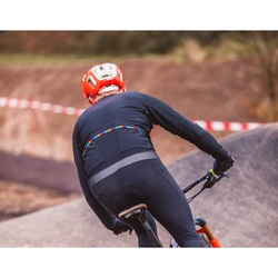 La chaqueta de invierno combina una sección frontal laminada de 3 capas transpirable resistente a la intemperie con una parte trasera de tela italiana Lombardia DWR (repelente al agua duradero). El resultado es un buen aislamiento y protección contra los elementos. La banda reflectante en la cintura brinda visibilidad adicional y mantiene todo en su lugar. Todas las costuras internas están planchadas y selladas para brindar mayor protección contra el viento. Puños interiores de elastano para protegerte del viento.