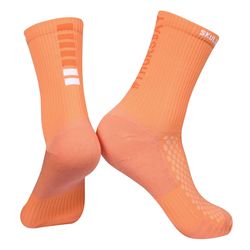 Hecho de algodón orgánico de fibra larga de alta calidad, el material se siente cómodo contra la piel. Cálido, transpirable, suave y con forma de pie en los lugares adecuados para el ciclismo. Con un puño elástico acanalado que se sienta alto en el tobillo, la tela es elástica en todo. Sección elástica alrededor del mediopié para un ajuste seguro.
