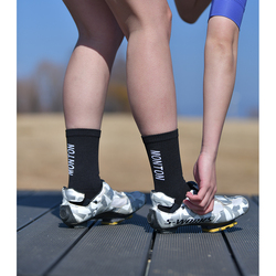 Hecho de algodón orgánico de fibra larga de alta calidad, el material se siente cómodo contra la piel. Cálido, transpirable, suave y con forma de pie en los lugares adecuados para el ciclismo. Con un puño elástico acanalado que se sienta alto en el tobillo, la tela es elástica en todo. Sección elástica alrededor del mediopié para un ajuste seguro.